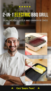Bring the magic of barbeque and the warmth of a hot pot together in one sleek package. Our 2-in-1 Electric BBQ Grill & Hot Pot combines versatility with efficiency, ensuring your kitchen experience is both delightful and practical. Whether you’re craving a sizzling steak or a simmering broth, this multifunctional cooker caters to all your culinary whims. Say goodbye to multiple cookware and embrace the future of kitchen appliances.