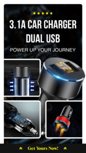 Charge your devices quickly with our 3.1A Car Charger Dual USB. Equipped with two ports, it delivers fast and efficient charging for smartphones, tablets, and other USB-powered devices. The compact design fits seamlessly into your car’s cigarette lighter socket, ensuring convenient access to power while driving. Built-in safeguards protect against overcharging and overheating, providing peace of mind. Stay connected and powered up wherever you go with this essential car accessory.