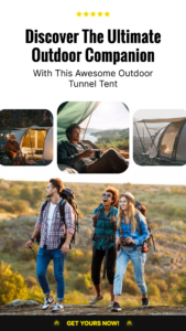Description: “Explore the outdoors with our 3-4 Person Outdoor Tunnel Tent. Designed for comfort and durability, this spacious tent offers ample room and protection for your camping adventures.”