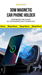 Upgrade your car’s convenience with our 30W Magnetic Car Phone Holder. This versatile device combines a strong magnetic mount with fast wireless charging capabilities, ensuring a secure grip and rapid power delivery for your smartphone. Compatible with Qi-enabled devices, it provides easy installation on your car’s dashboard or air vent. Keep your phone charged and accessible while driving with this essential accessory.