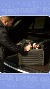 Love the magnetic closing lid feature – no more worrying about things falling out when I open the trunk.