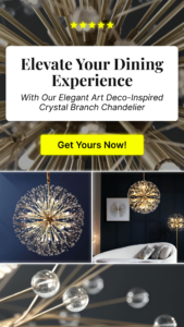 Description: “Illuminate your dining room with our Elegant Art Deco-Inspired Crystal Branch Chandelier. This stunning piece combines vintage charm with modern elegance, featuring intricate crystal branches that add a touch of sophistication to any space.”