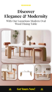 Description: “Elevate your dining room with our Luxurious Modern Oval Wood Dining Table. Crafted for elegance, this oval-shaped wood table enhances sophisticated dining spaces with its stylish design and quality craftsmanship.”