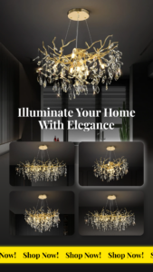 Description: “Illuminate your space with our Luxury Modern Crystal Chandelier. This elegant pendant lighting fixture adds a touch of sophistication and glamour, perfect for enhancing any room’s ambiance.”