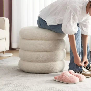 Small Boucle Storage Ottoman – Round Sherpa Footstool