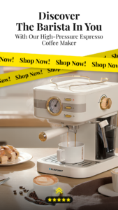 Description: “Enjoy barista-quality espresso and cappuccino at home with our Premium 20-Bar Espresso and Cappuccino Coffee Maker. This machine delivers rich, flavorful coffee with a professional touch, perfect for coffee enthusiasts.”